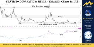 Most people are familiar with the Gold-to-Dow ratio. What I’ve shown you here is the Silver-to-Dow ratio. We’ve only been at these levels three times in history: