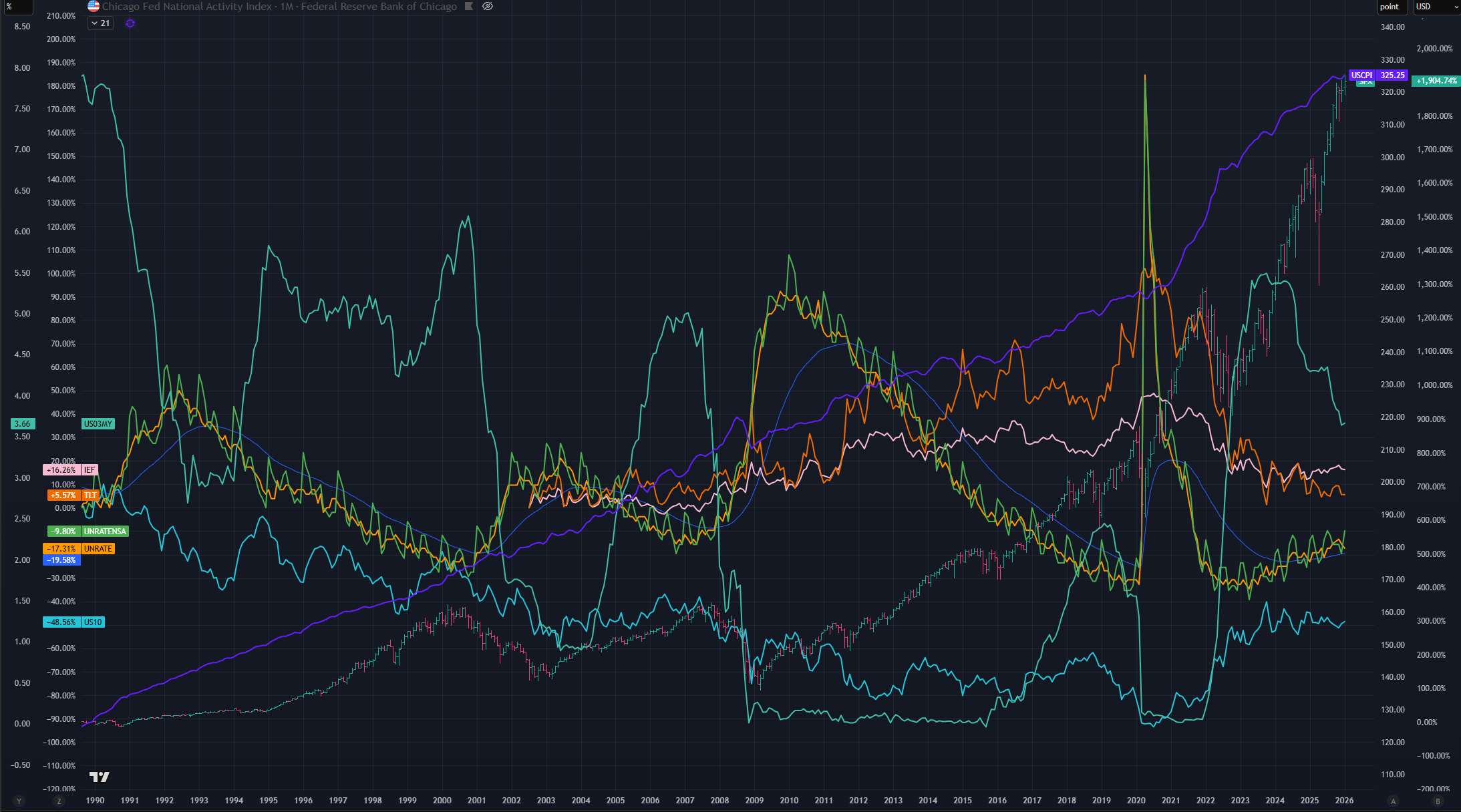 L’indice Expenditures s’est stabilisé autour de 3.25 après la normalisation brutale de la bulle 2021-2022, où il avait atteint ~4.75. Le Y/Y est quasi flat, légèrement négatif.